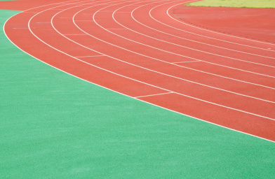 (3)塑膠跑道雨后不積水的施工履歷:A、為擔(dān)保平整度,鋪設(shè)跨度只管大,主跑道上跨度為3.66米(三條道同時(shí)攤鋪),非賽區(qū)跨度大于4米。B、一般在南北半圓雨后必定有片面積水征象,特別是跳高區(qū)半圓更為緊張。塑膠跑道施工顯露為擔(dān)保坡度,最好采用“龜背式”施工法,以利于排水。